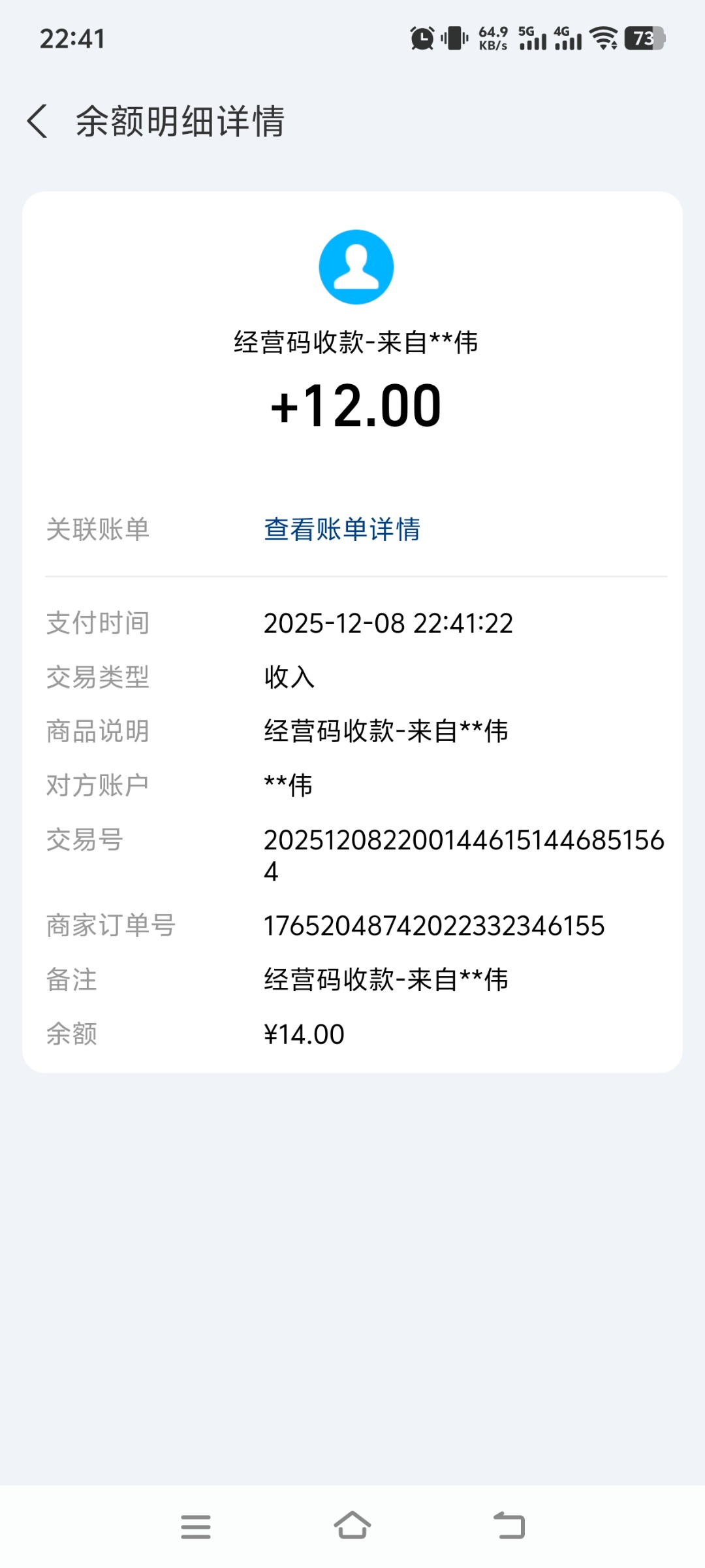 猪脚饭到账