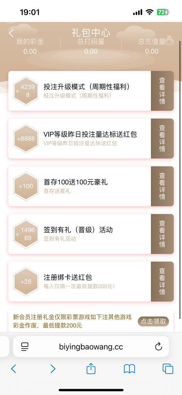 注册绑定绑卡 点击主页第二个天天礼包 自助领取28 彩金限制彩票最低提200