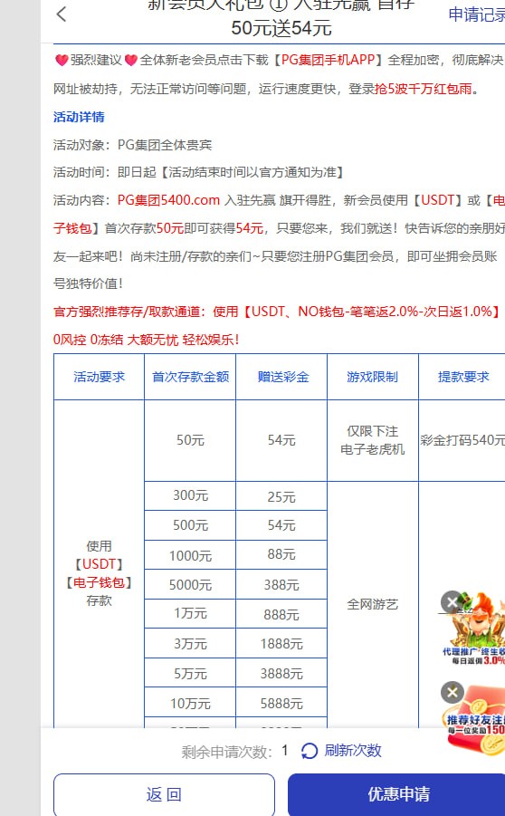 pg集团新人注册下载app有50+54以小博大可以玩 需要NO钱包充值切记才可以申请 打码540可以提现 NO钱包一块钱起提秒到 地址是https://www5454-j5.22005400.com:21466/?dl=9nfd6h