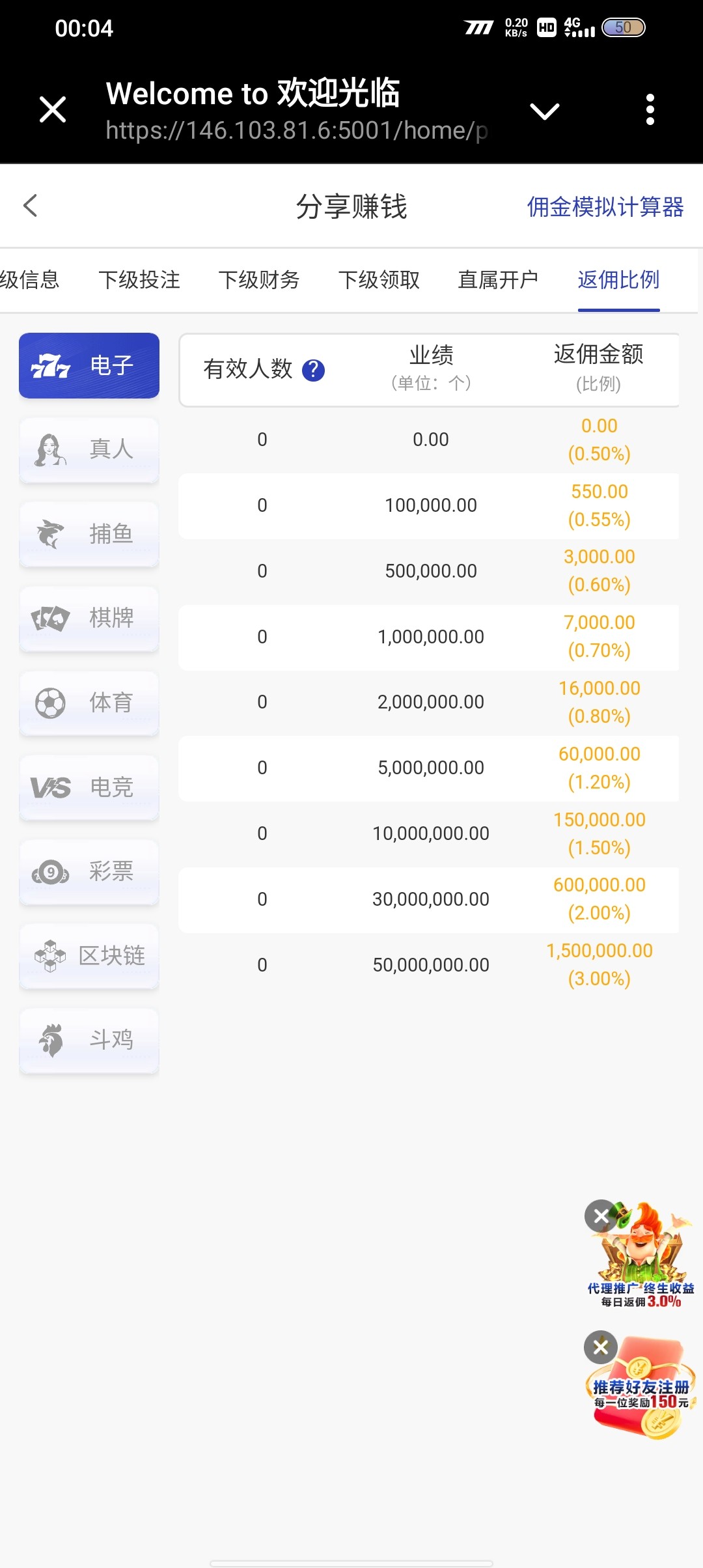 前两年随便在某个论坛挂了7668的推广链接,突然有个大哥经常充值,我隔三差五领个三五百佣金,现在莫名其妙就改了,狗庄还真是恶心,可能是看到我给他们站内信留言了特意照顾我一样,他喵的昨天下级打了10w流水本来可以领三百多,结果突然给我改了,我还去对比一下其他五六个台子,压根都不需要人充值,只要投注就行了,我特喵真想联系那个大哥别玩了