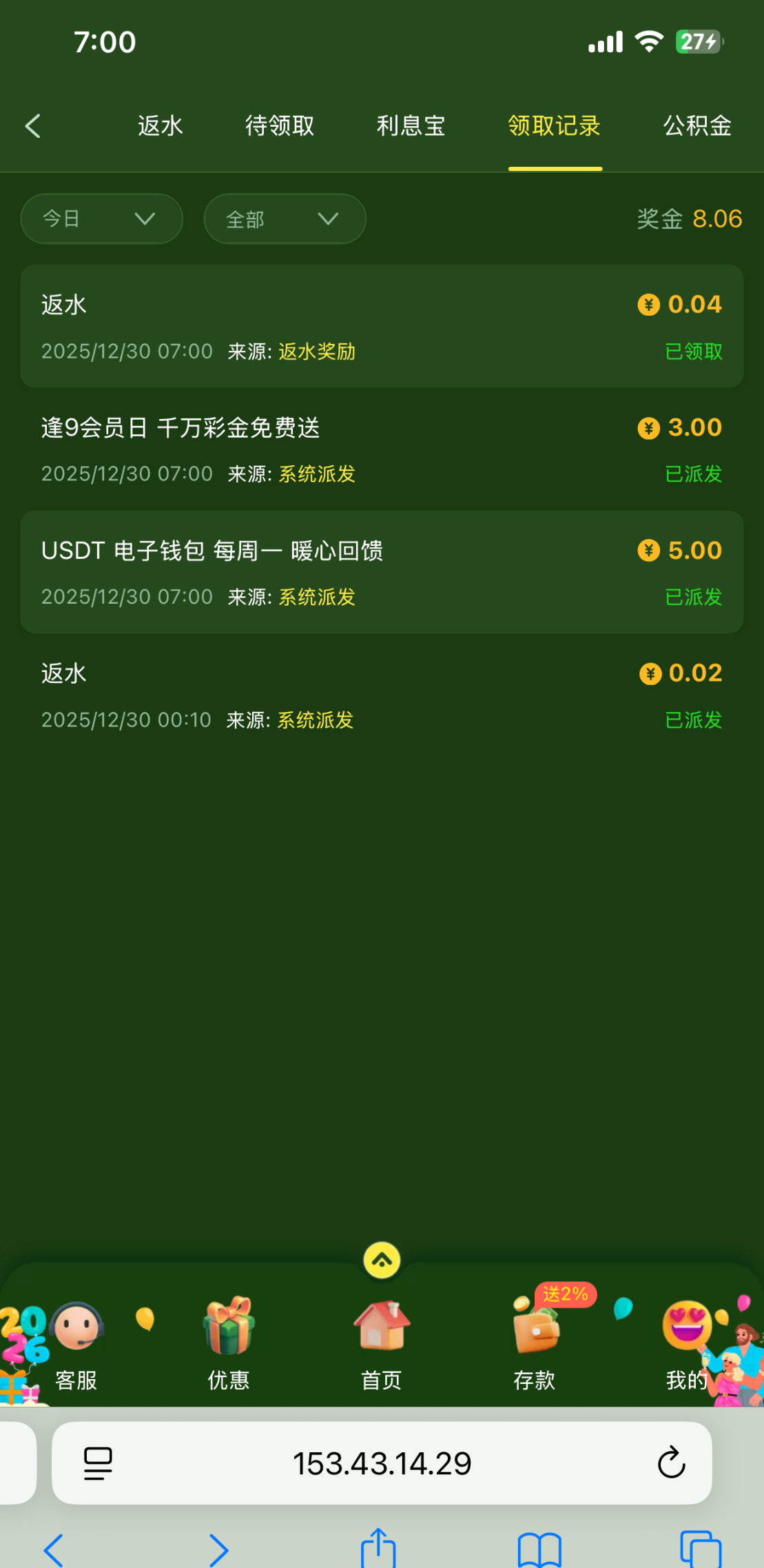 领了8块打不出, 充过30,不知道黑不黑,有就有没有就算了官方链接3615.com