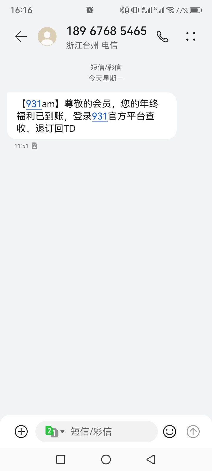 931. am 收到短信找客服